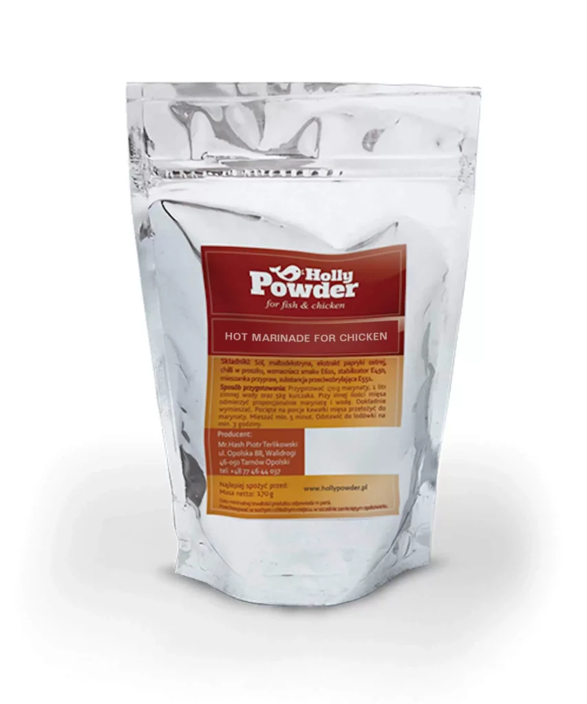 Marinata picantă pentru aripi de pui este un amestec fluid de ingrediente atent selectate. Doar apa rece este necesară pentru prepararea sa. Un ambalaj de este suficient pentru a marina 5 kg de carne proaspătă.