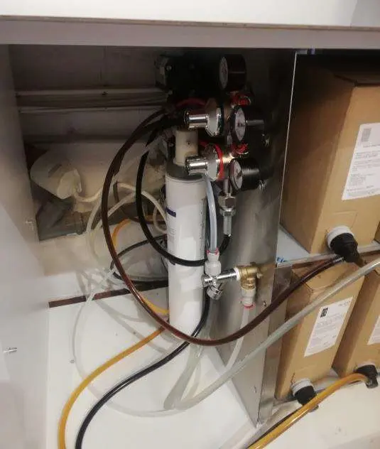 Când utilizați dispozitivul postmix, nu aveți nevoie de un dozator separat pentru apă carbogazoasă. Dozatorul de sifon servește și apă. Apa este răcită direct în aparat folosind frigiderul încorporat. Din dozator pot fi servite atat apa gazoasa cat si apa plata.